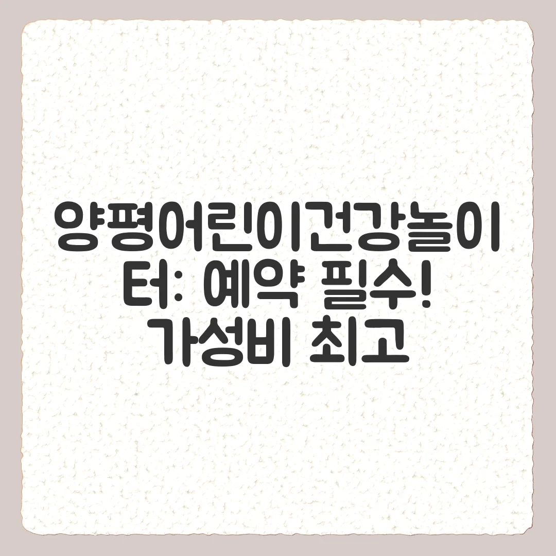 이 포스팅이 양평어린이건강놀이터에 대한 궁금증을 해소하고, 여러분의 양평 나들이 계획에 도움이 되기를 바랍니다. 양평어린이건강놀이터 방문 경험이나 추가 팁이 있다면 댓글로 자유롭게 공유해주세요!